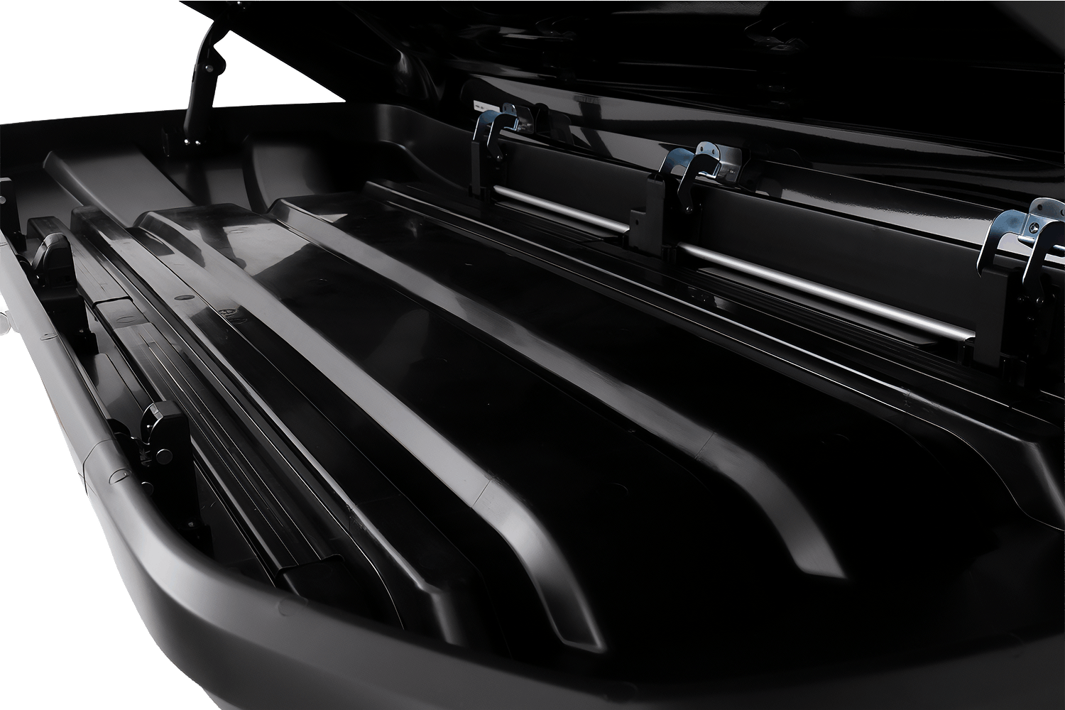 183 x 21 x 65 cm-es belső méreteivel a doboz alacsony profilú, miközben bőséges helyet biztosít. Elegáns vonalai és fényes felülete tökéletesen kiegészíti a modern autók sziluettjét.