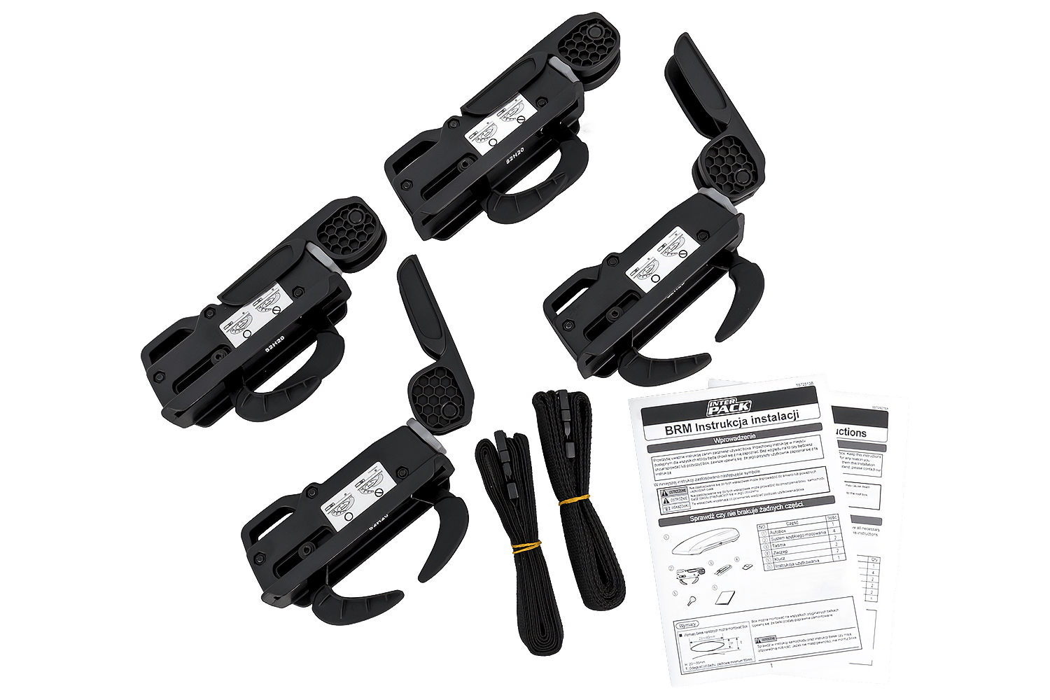 A készlet textil hevedereket tartalmaz, amelyek erre a célra rögzíthetők, biztosítva a csomagok biztonságos szállítását és a teljes szerkezet stabilitását.