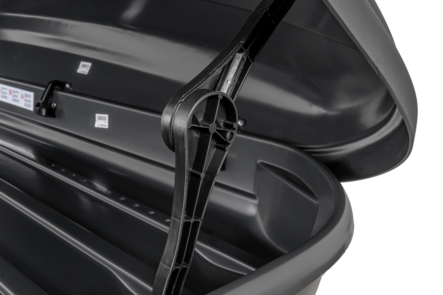 A Torino szerkezete UV-álló ABS műanyagból készült, amely jól teljesít különféle időjárási körülmények között. Mindössze 14 kg súlyával és 75 kg maximális teherbírásával a doboz könnyű és robusztus is. Az áramvonalas fedél minimalizálja a légellenállást, csökkentve a zajt és az üzemanyag-fogyasztást vezetés közben.