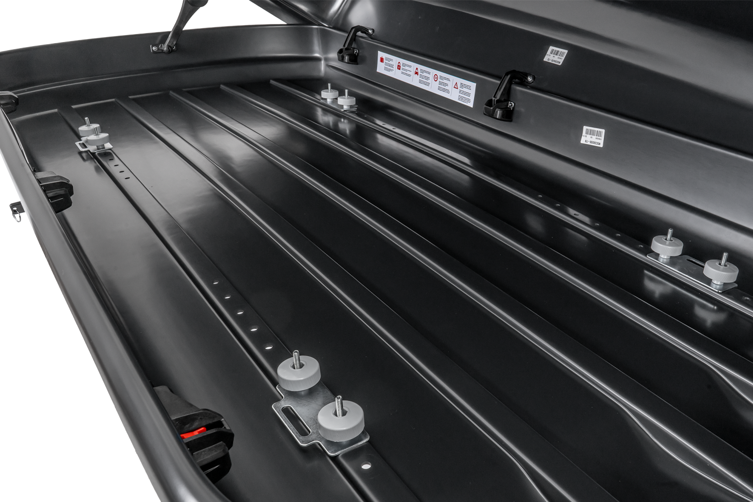 - Az Inter Pack Torino tetőbox – 460 literes űrtartalom, 185 cm hosszúság, 75 kg teherbírás és 14 kg súly. Akár 175 cm hosszú bőröndöket, táskákat, síléceket és snowboardokat is elbír. Letisztult kialakítása, U alakú bilincsei és hárompontos központi zárja