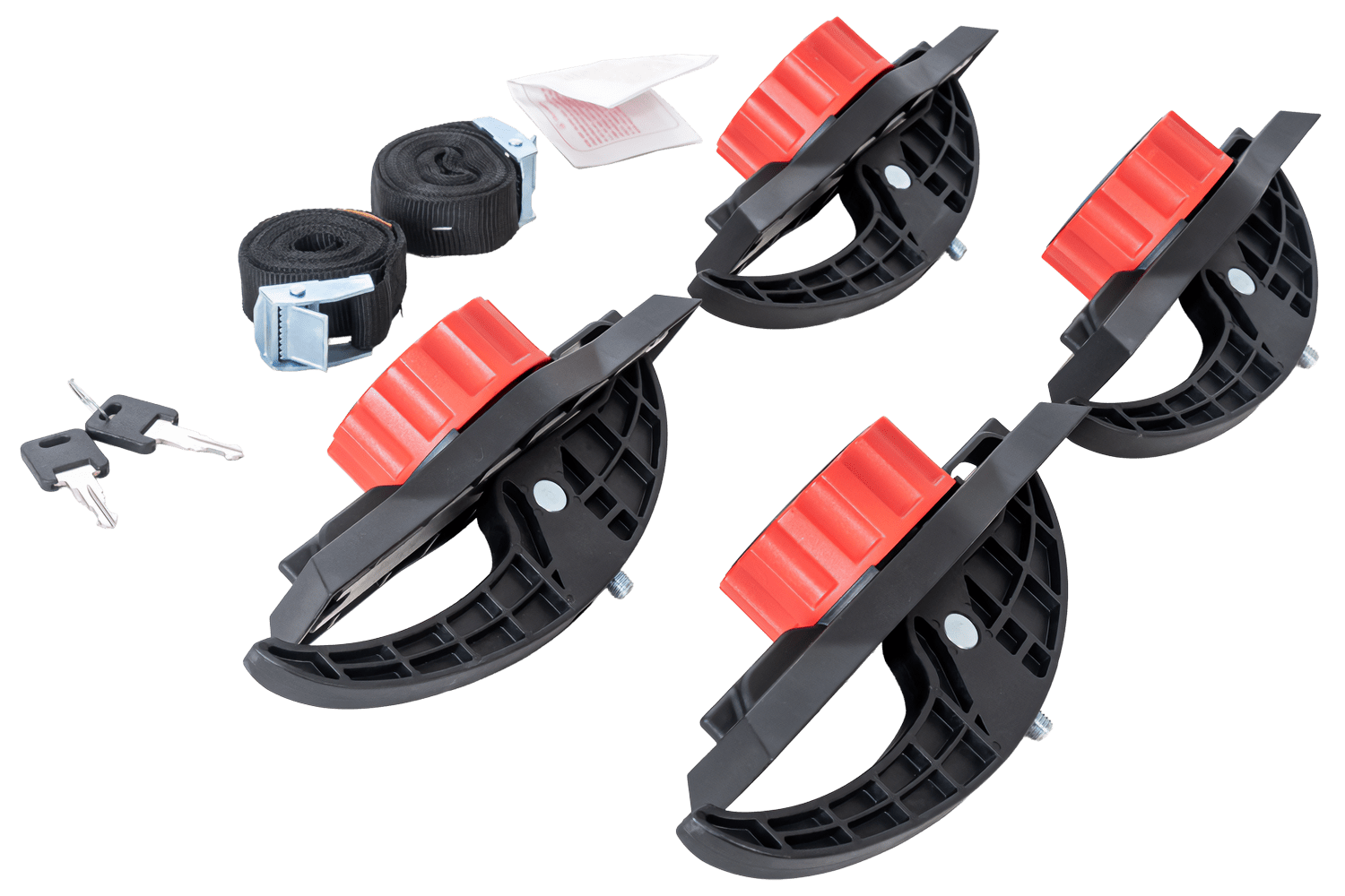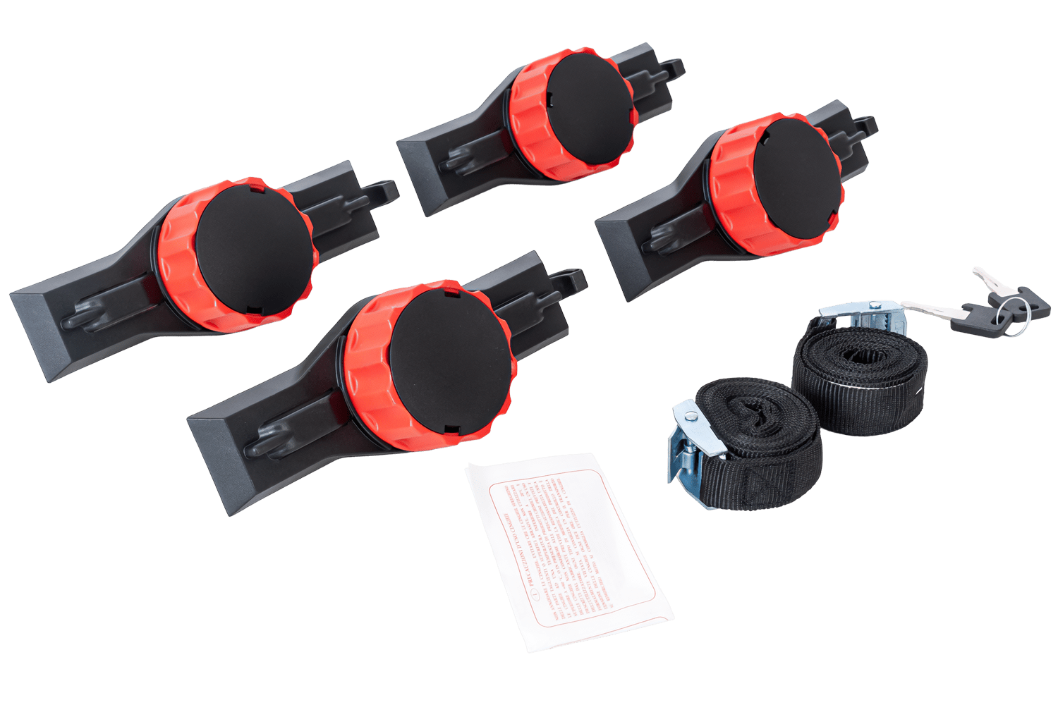 A mozgatható vezetőknek köszönhetően a tartó 40 és 100 cm közötti rudak közötti távolsághoz igazodik. A Rapid Fit dinamométerrel van felszerelve, amely jelzi a megfelelő rögzítést és véd a túlzott meghúzás ellen, kiküszöbölve a doboz vagy a csomagtartó károsodásának kockázatát.