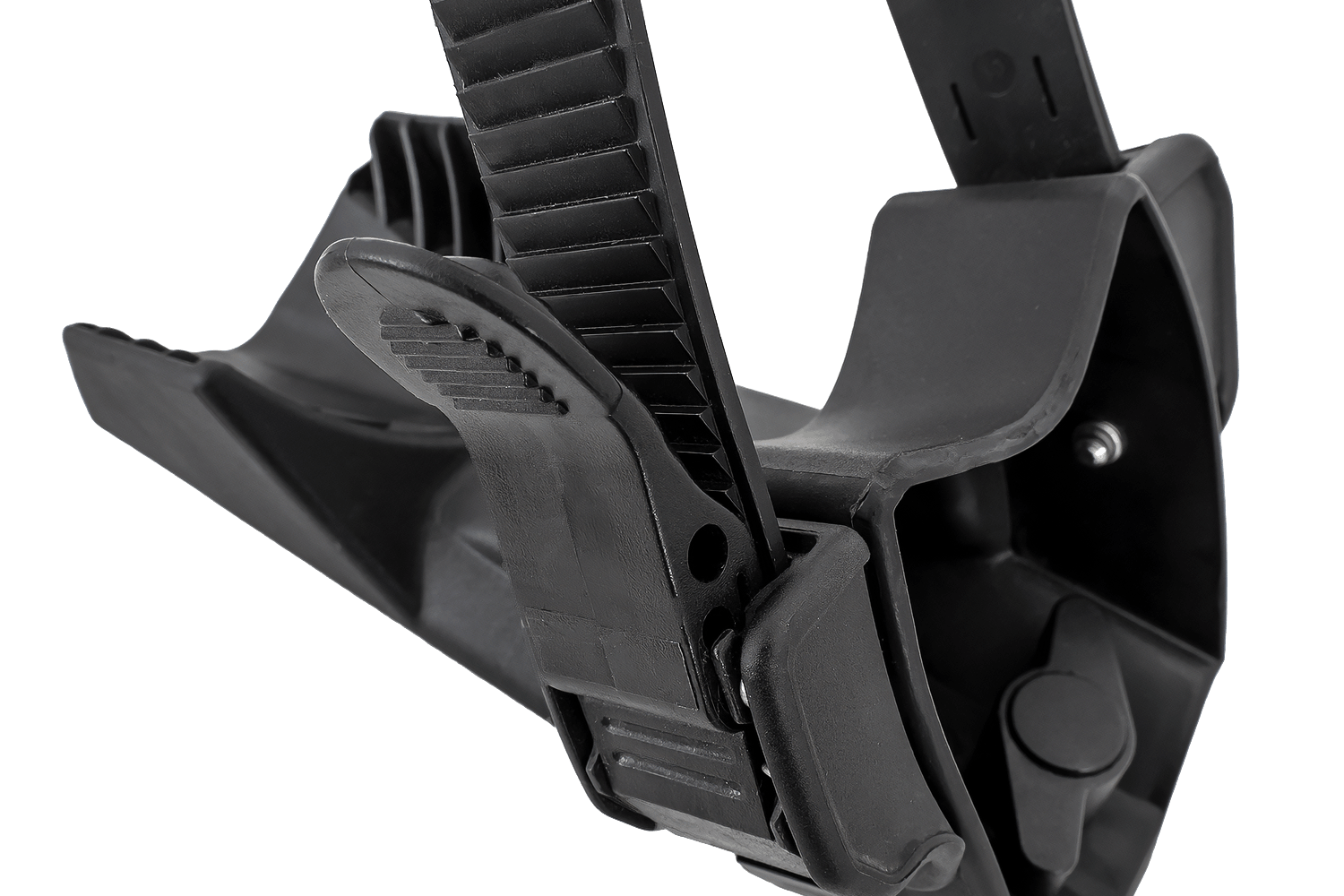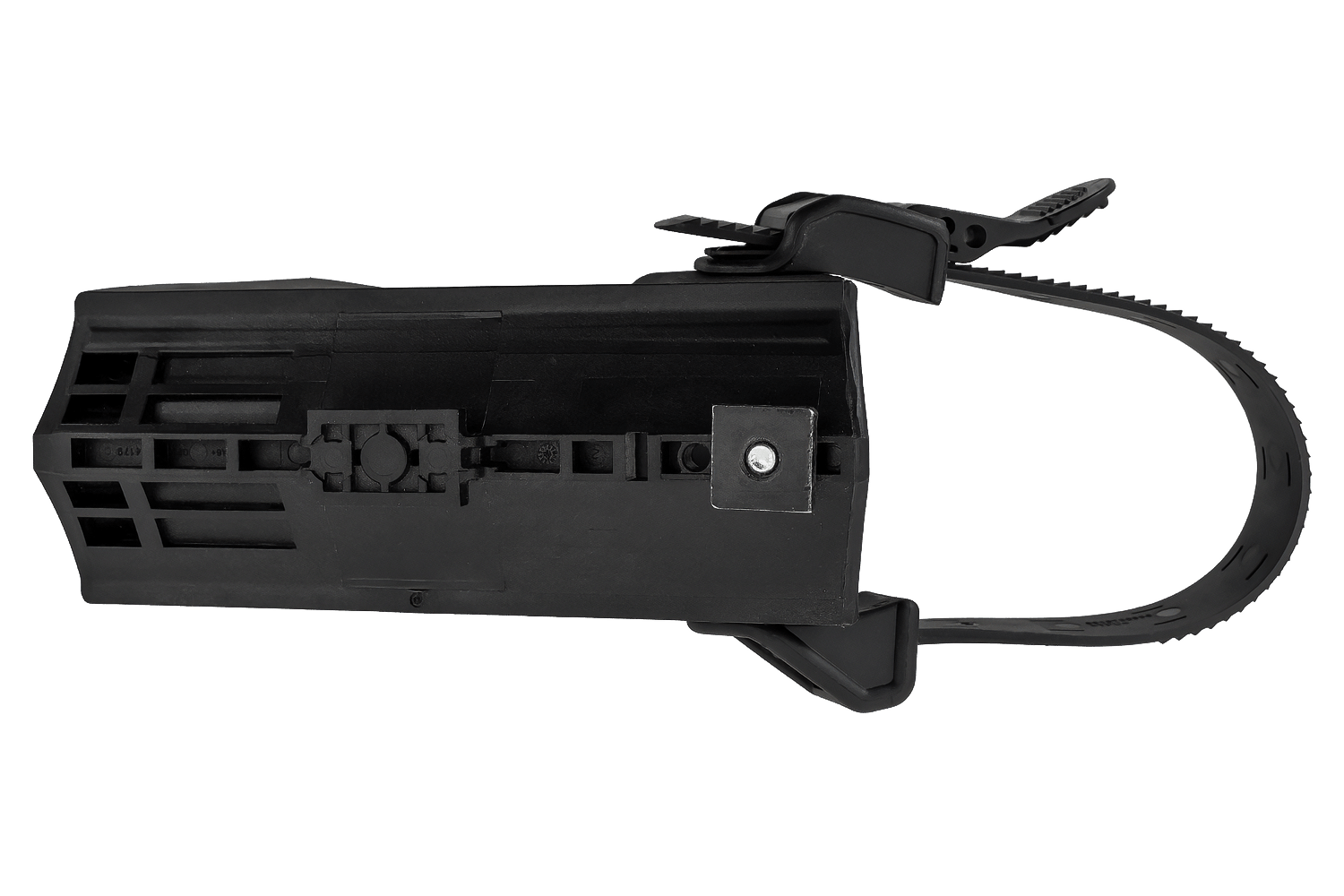 - Bal oldali keréktámasz kerékrögzítő hevederrel. Az Atera Strada Evo/Vario vonóhorogra szerelhető kerékpártartóhoz tervezve.