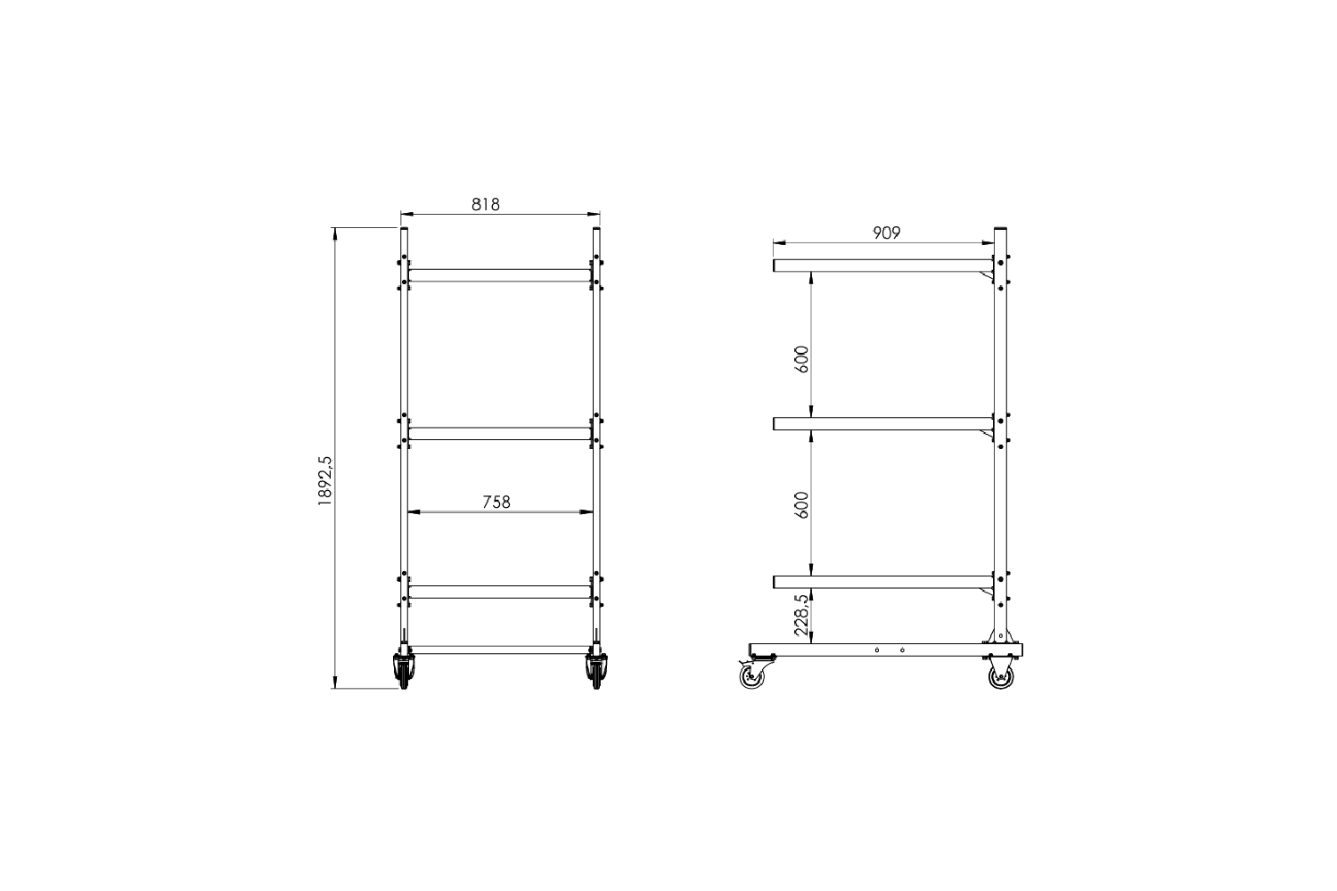 Az állvány három szinten helyezkedik el, három tetőbox számára , lehetővé téve több box egyidejű tárolását egyetlen, rendezett szerkezetben. A kerekek lehetővé teszik az állvány könnyű mozgatását, növelve a kényelmet és megkönnyítve a tárolt tartozékokhoz való hozzáférést. Az állvány magassága 1892,5 mm , szélessége 818 mm és mélysége 909 mm , biztosítva a hely optimális kihasználását.