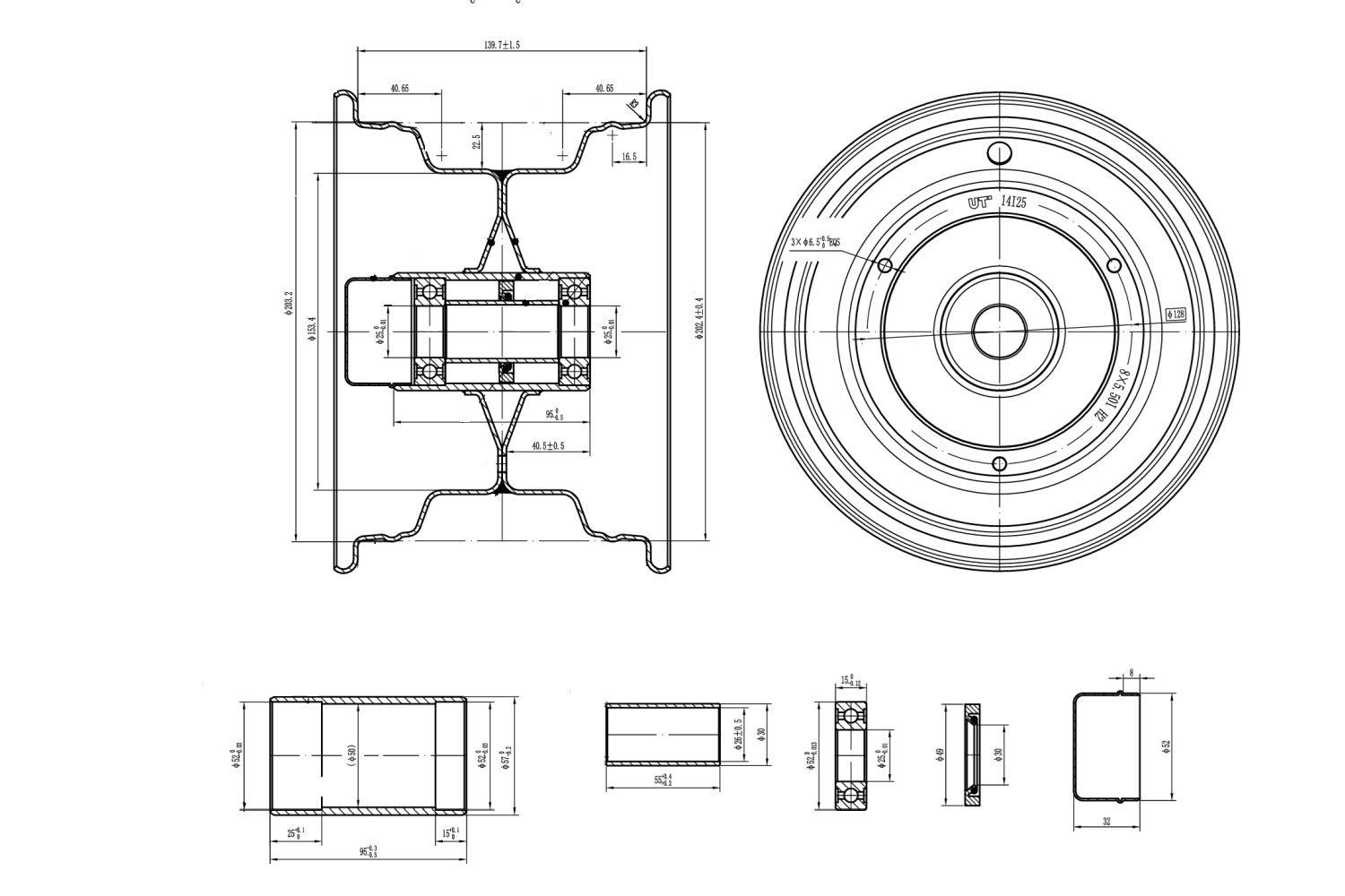 Ez a modell két tömített 6205-2RS csapággyal van felszerelve, amelyek biztosítják a sima működést, valamint a por és a nedvesség elleni védelmet. Az agy hossza 95 mm , beleértve a csapágyak közötti körülbelül 55 mm-es távolságot, az agy külső átmérője pedig 57 mm . A 3x128-as rögzítőfurat-távolság azt jelenti, hogy a felni három furattal rendelkezik, amelyek egy 128 mm átmérőjű körben helyezkednek el. A csavarok távolsága kulcsfontosságú paraméter a felni kiválasztásakor, hogy biztosítva legyen a jármű agyához való megfelelő illeszkedés.