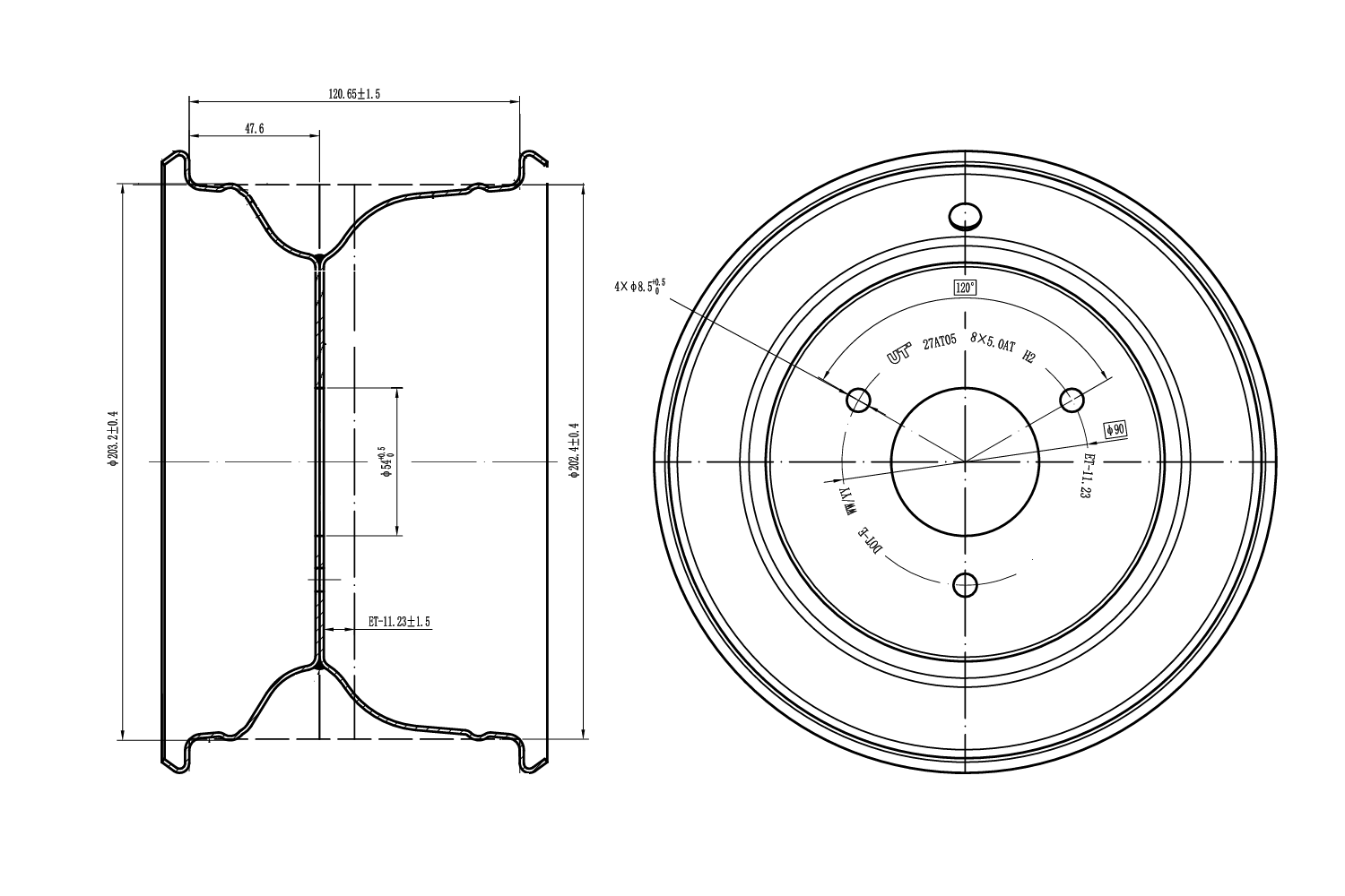 UNITRAILER acél felni fekete 5ATx8"H2 3x90 ET:-11.23