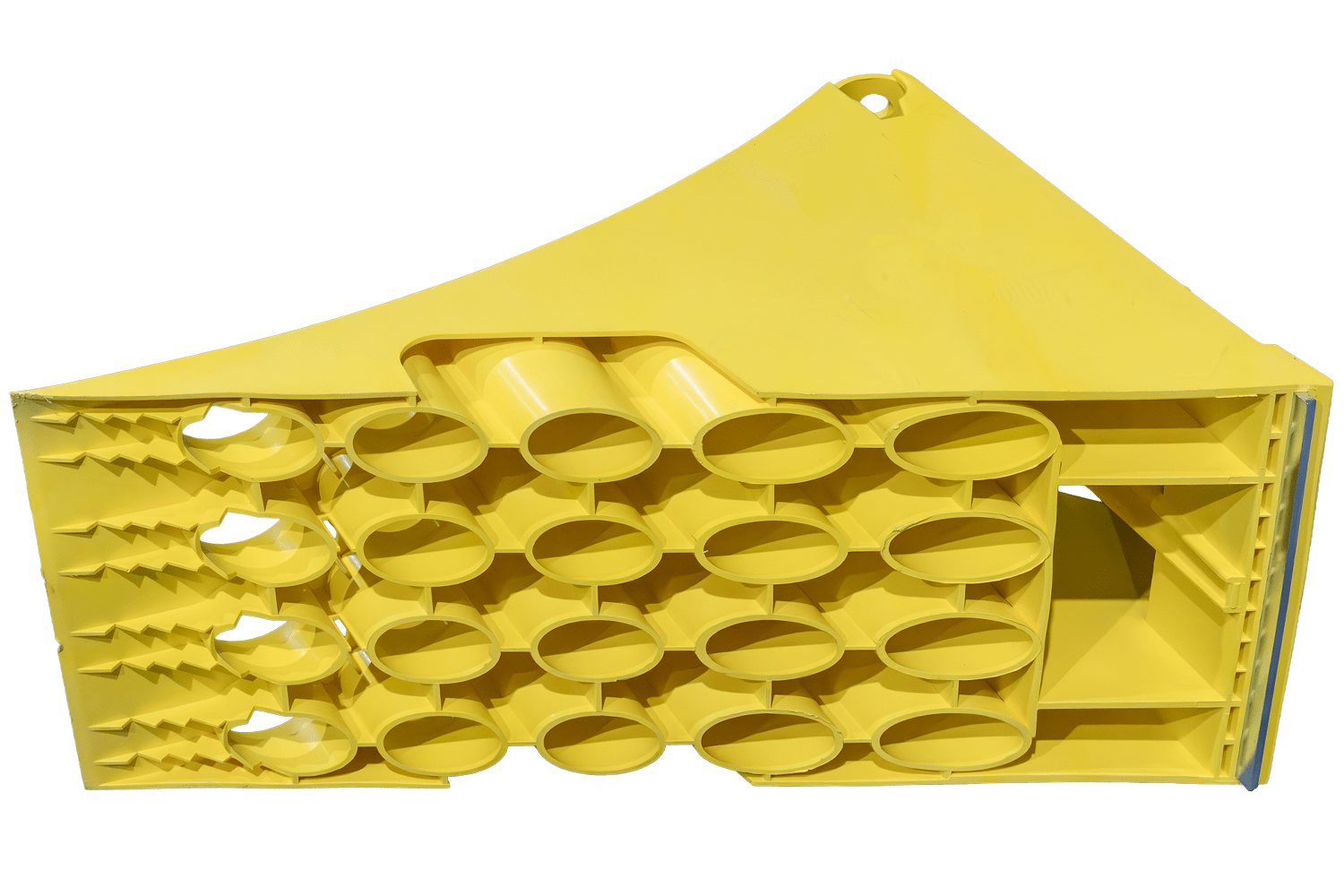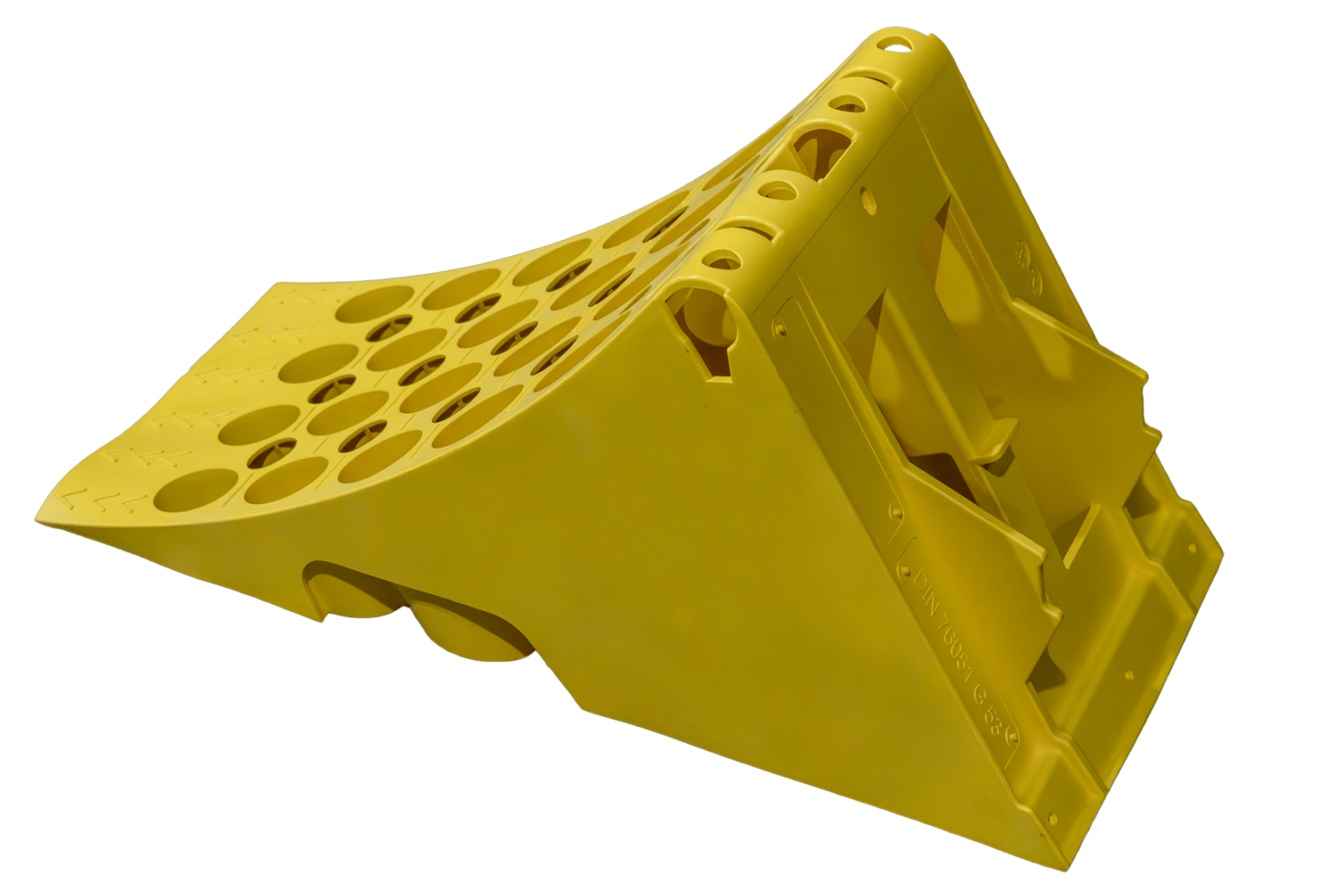Tartós, mégis könnyű műanyagból készült, az ék jelentősen könnyebb, mint a hagyományos fém ékek , így könnyebb kezelni és szállítani. Az alján található integrált acél megerősítő lemez megakadályozza az ék elmozdulását használat közben, növelve annak hatékonyságát és biztonságát. A termék megfelel a DIN 76051-1 (11/1992) szabvány követelményeinek, amely a haszongépjárművekben használt ékekre vonatkozó műszaki szabványokat határozza meg. Robusztus konstrukciójának és kifinomult profiljának köszönhetően az ék megbízható rögzítést biztosít a jármű nehéz terepen is.