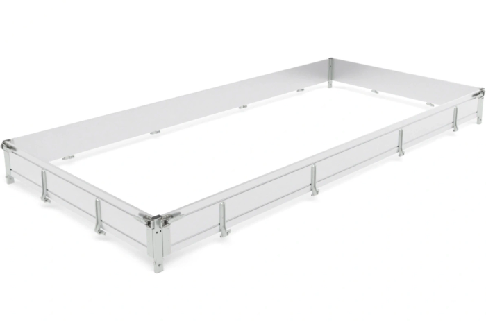 Négy darabos alumínium oldalpanel-készlet a TEMARED CARPLATFORM 4521 és UNITRAILER UNIPLAT 450 sorozatú pótkocsikhoz. Az oldalpanelek 30 cm magasak. Alumínium konstrukciójuk lehetővé teszi a lehető legalacsonyabb súlyt, így a teherbírás nem csökken jelentősen. Alacsony súlyuk ellenére az oldalpanelek rendkívül merevek, így nagyon jó védelmet nyújtanak a szállított rakománynak. Az egyszerű összeszerelés lehetővé teszi, hogy bármikor felszerelhetők legyenek a pótkocsira, az egyes oldalpanelek dönthetősége pedig nagyon kényelmessé teszi a használatukat.
