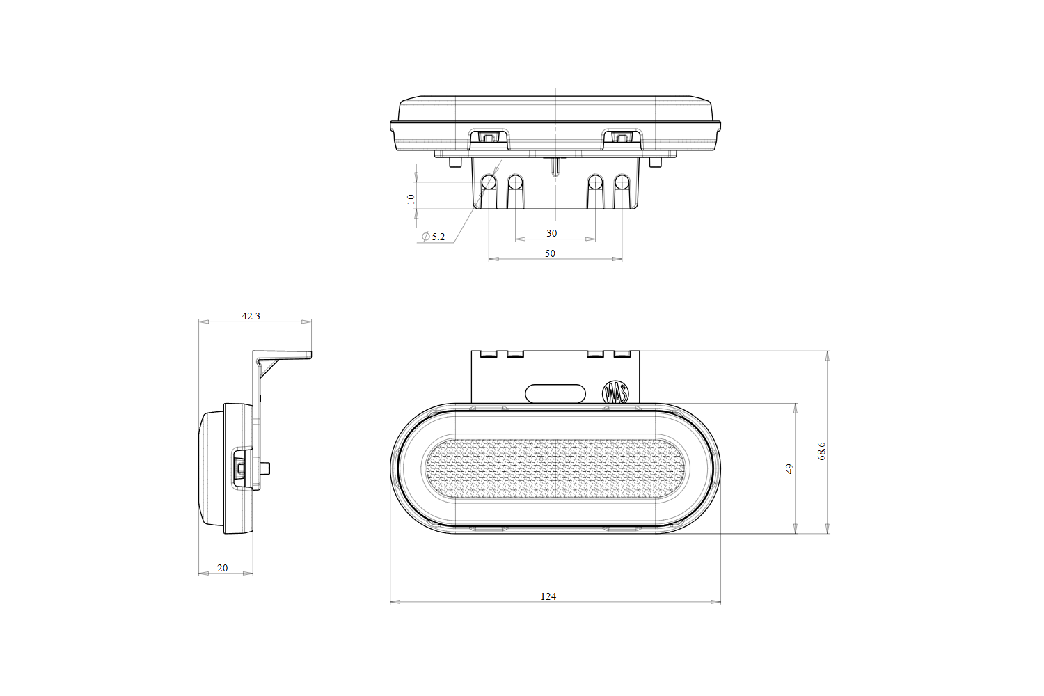 - A WAŚ W198 1420 LED-es helyzetjelző lámpája bal vagy jobb oldalra is felszerelhető. Olyan funkciókat kínál, mint az oldalsó helyzetjelző, az irányjelző és a fényvisszaverő. Ideális utánfutókhoz, furgonokhoz és lakókocsikhoz.