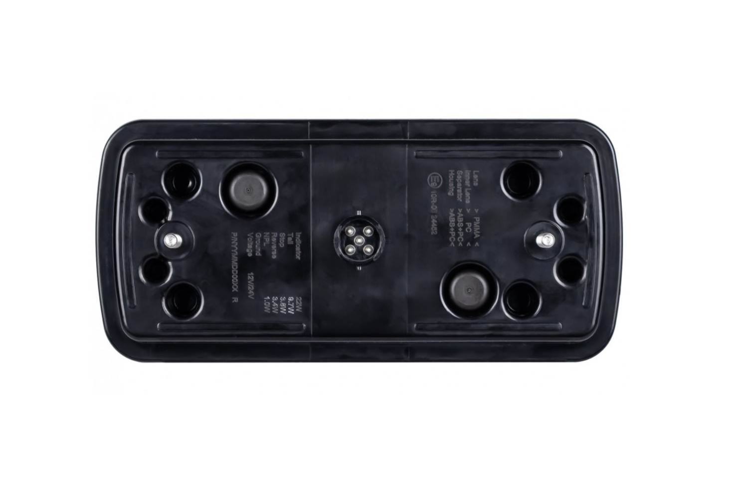 Az ECE R10, R148 és R150 jóváhagyással rendelkező hátsó lámpa megfelel a járművek világításának biztonságára és működésére vonatkozó szigorú szabványoknak. Az ECE R10 biztosítja az elektromágneses kompatibilitást, kiküszöbölve az elektronikus eszközökkel való interferencia kockázatát. Az ECE R148 meghatározza a világítóberendezésekre vonatkozó követelményeket, biztosítva azok megfelelő láthatóságát és hatékonyságát. Az ECE R150 ezzel szemben a fényvisszaverőkre vonatkozó szabványokat szabályozza, javítva a járművek láthatóságát az úton. Ezen jóváhagyásoknak köszönhetően a lámpa megbízható megoldást jelent a nehéz körülmények között üzemelő haszongépjárművek, pótkocsik és gépek számára.