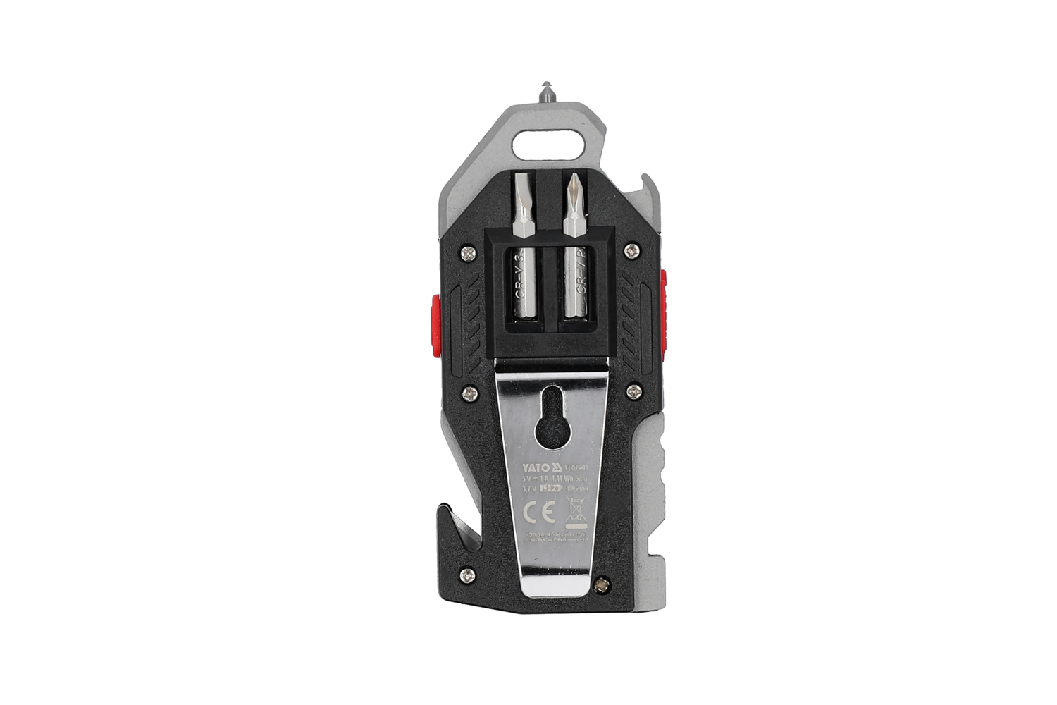 - Ez a 6 az 1-ben multifunkcionális zseblámpa akár 400 lumen fényerővel ötvözi a világítást olyan praktikus eszközökkel, mint az ablaktörő, a kés, a csavarhúzó és a nyitó. 6 világítási móddal és kétféle LED-del rendelkezik. Tökéletes autóba, műhelybe és sza