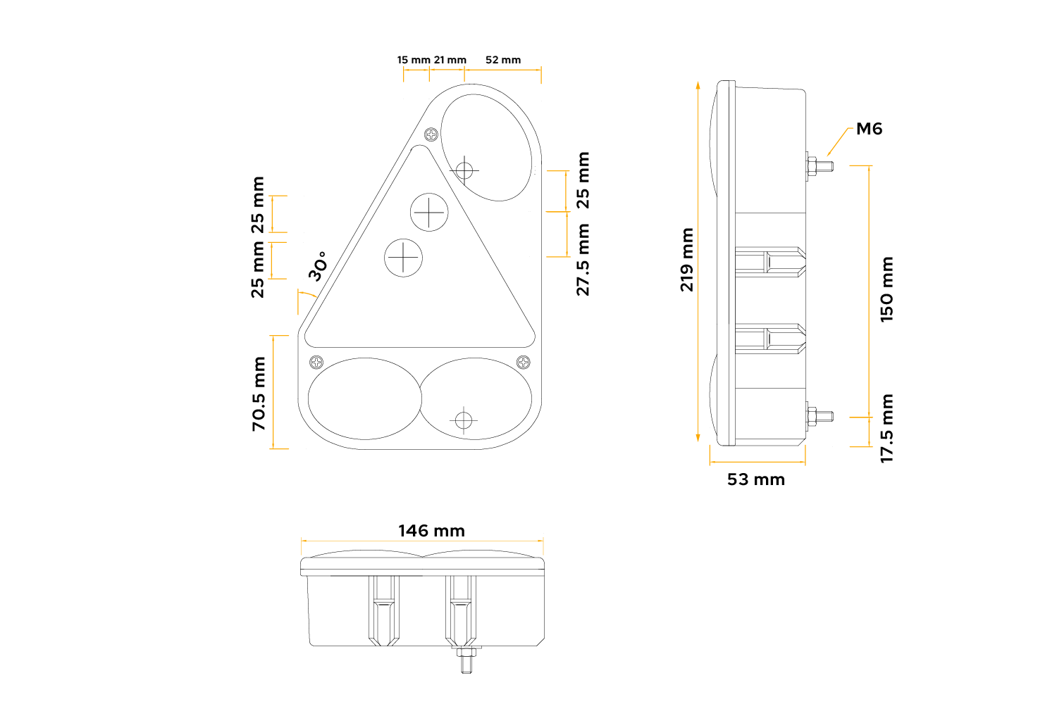 Az ASPÖCK Earpoint III hátsó lámpája a jármű bal oldalára való felszerelésre készült. Méretei: szélesség 146 mm, magasság 219 mm, mélység 53 mm . Az 5 tűs bajonettzáras csatlakozóval gyors és egyszerű felszerelést tesz lehetővé. pótkocsikban, buszokban vagy pótkocsikban .