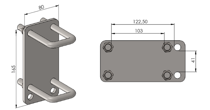 A lemez furatai közötti távolság: 41 mm és 103 mm vagy 122,5 mm