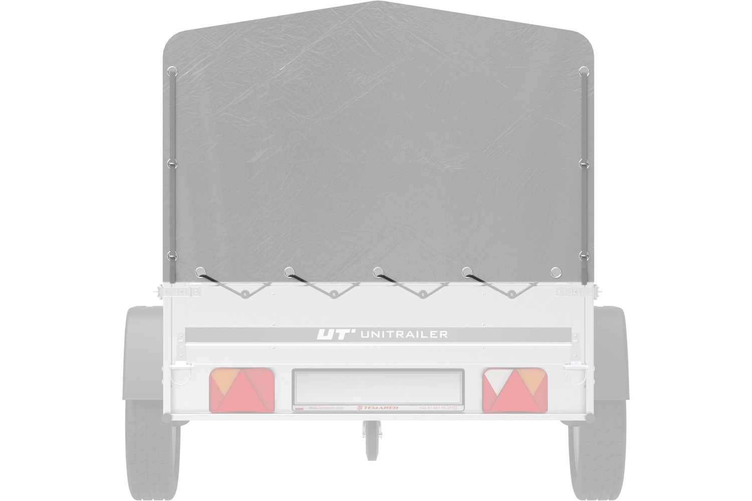 A ponyva vastag, vízálló anyagból készült, így még a hosszan tartó eső sem okozza a szivárgást. A ponyva szürke színe stílusosan illik bármilyen autó utánfutóhoz, hozzájárulva vonzó megjelenéséhez. A ponyva egy rugalmas zsinórral is rendelkezik, amely kampókkal van ellátva a gyors feszítéshez.