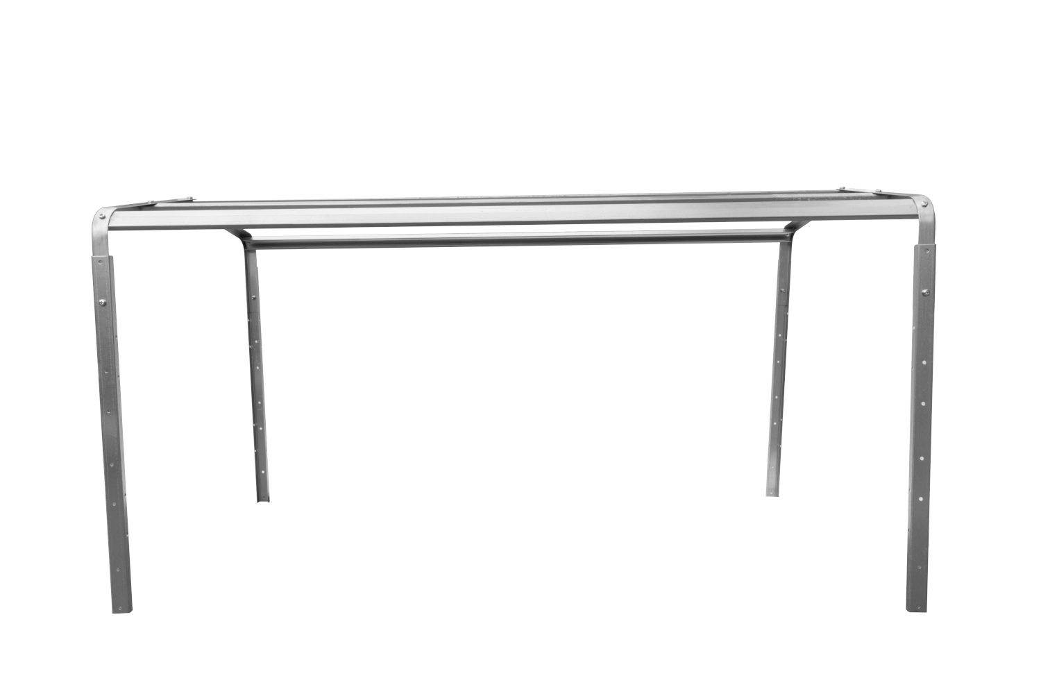 Ez a váz a KIPP 230-as kerti utánfutóhoz és más, 230 x 125 cm-es szállítási felületű utánfutókhoz alkalmas. A váz legmagasabb pontján 80 cm magas, és oromzatos tetővel rendelkezik a víz és a hó jobb elvezetése érdekében menet közben. Nagyon masszív acélgerendákból készült, amelyeket horganyzás véd a rozsda ellen. A vázat a készletben található csavarokkal szerelik össze, így erős és stabil vázat képez a ponyva számára.