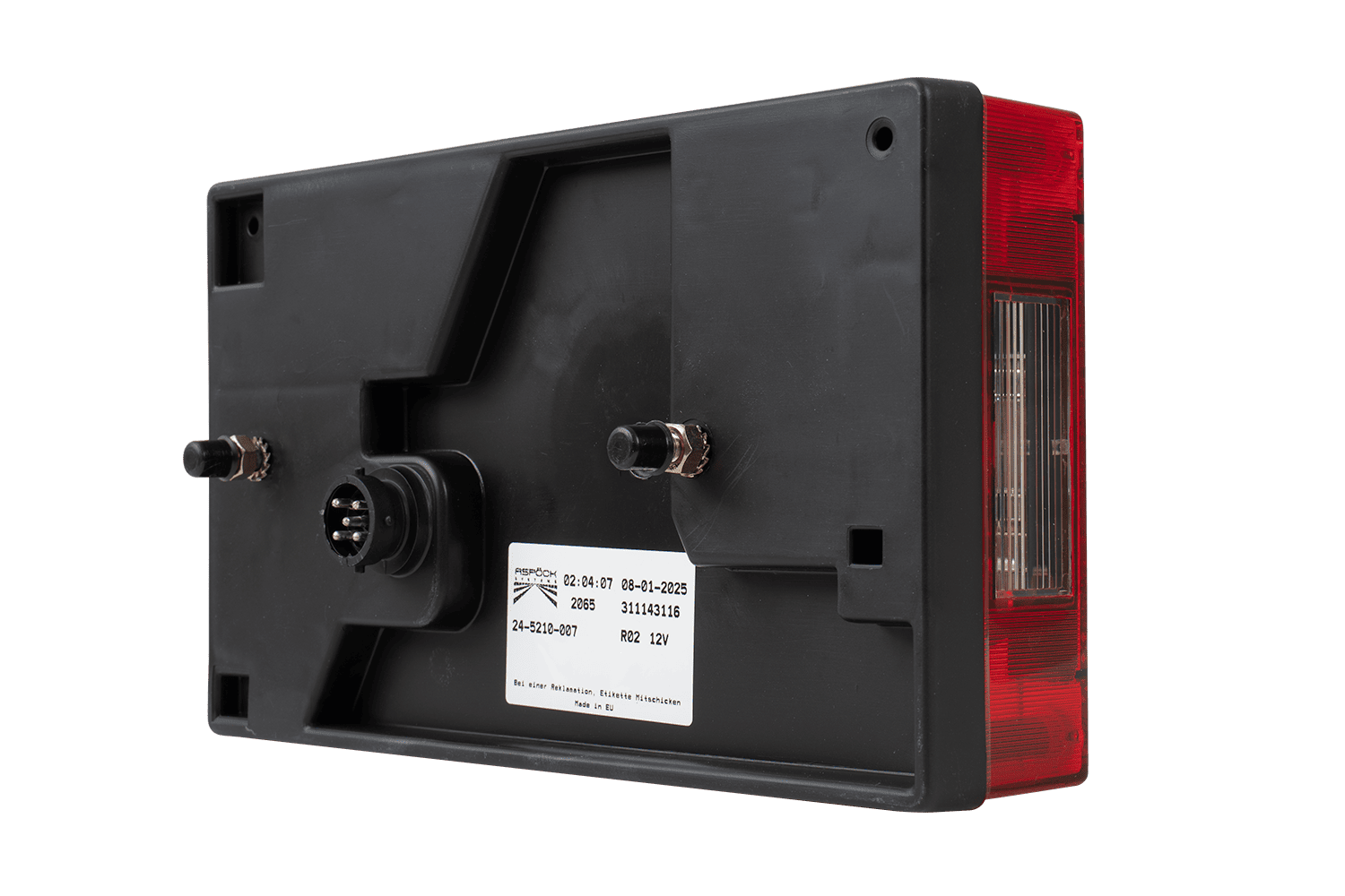 Az ASPÖCK Multipoint I hátsó lámpa a jármű jobb oldalára való felszerelésre készült. Méretei: szélesség 240 mm, magasság 140 mm, mélység 52 mm . Az 5 pólusú bajonettzárral felszerelve gyors és egyszerű felszerelést tesz lehetővé. pótkocsikban, buszokban vagy pótkocsikban .