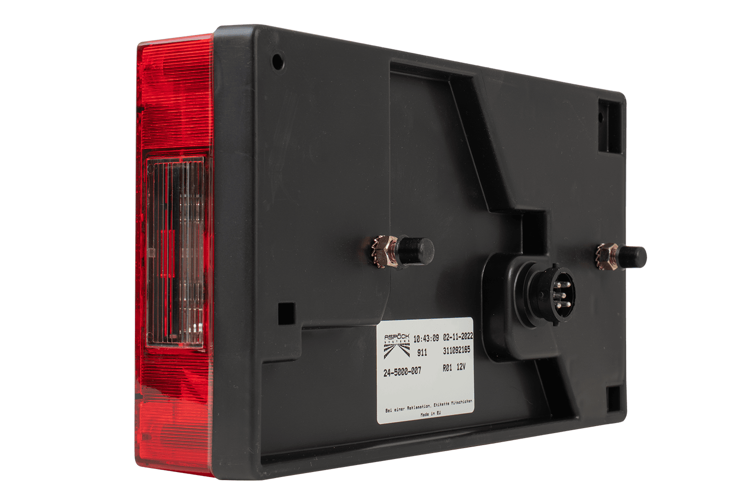 - Az ASPÖCK Multipoint V hátsó lámpa bal oldalra szerelhető. Hat funkcióval rendelkezik: helyzetjelző, féklámpa, ködlámpa, rendszámtábla-világítás, irányjelző és fényvisszaverő.