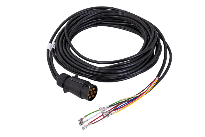 A MANTES elektromos rendszer praktikus és megbízható megoldás autó utánfutókhoz. A 7 méteres, 0,75 mm² keresztmetszetű főkábel szabványos 7 pólusú csatlakozódugóval van felszerelve, így a legtöbb járművel univerzálisan kompatibilis.