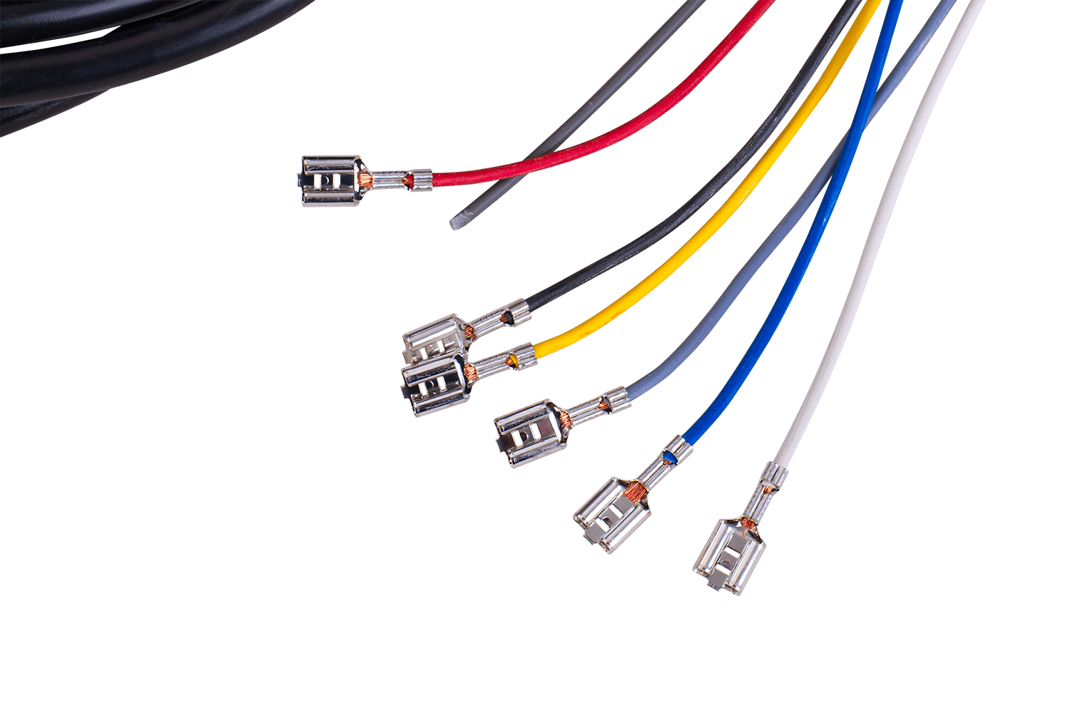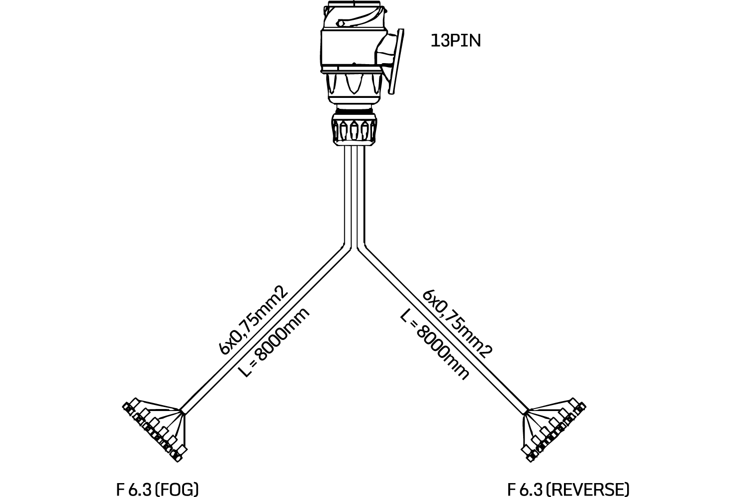 A kábelköteg női csatlakozókkal van felszerelve 6.3 a hátsó lámpák csatlakoztatásához. Gyors és biztonságos telepítést biztosítanak, kiküszöbölve a véletlen lecsatlakozás kockázatát vezetés közben. A csatlakozó kialakítása stabil elektromos csatlakozást garantál, biztosítva a teljes utánfutó világítási rendszer hosszú távú, problémamentes működését .