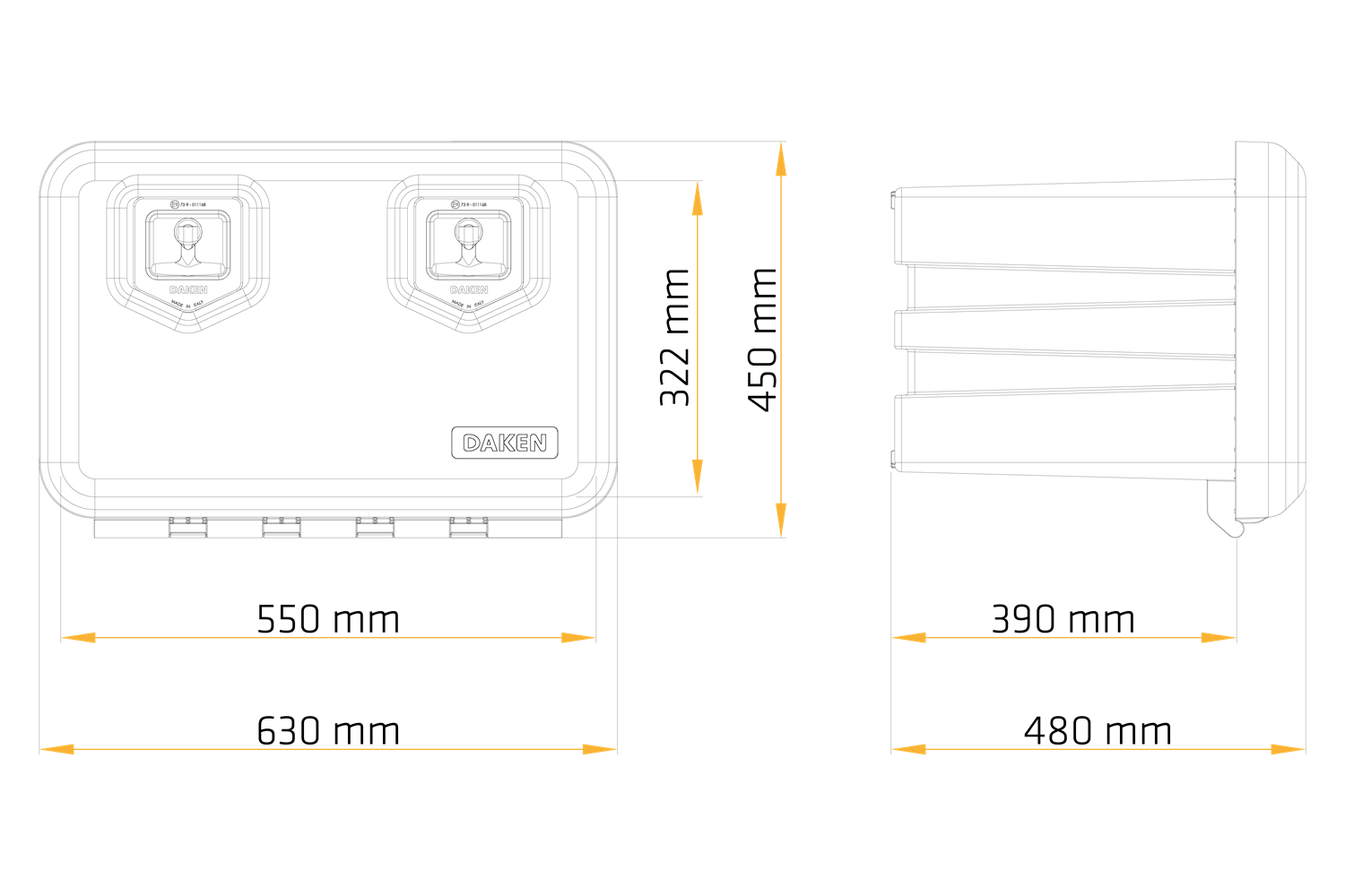 A 630 mm hosszú, 450 mm magas és 480 mm mély DAKEN WELVET 81004 szerszámosláda praktikus és megbízható megoldás a nélkülözhetetlen felszerelések tárolására járművekben és utánfutókban. Nagy , 78,5 literes űrtartalmával és 60 kg-os optimális teherbírásával lehetővé teszi a szerszámok és egyéb tartozékok biztonságos és kényelmes tárolását. A fokozott biztonság érdekében a doboz két masszív zárral van felszerelve, amelyek megakadályozzák a véletlen kinyílást és megvédik a tartalmat a lopástól . A készlet négy kulcsot tartalmaz , ami biztosítja a könnyű használatot és a doboz megosztásának lehetőségét a csapat többi tagjával .