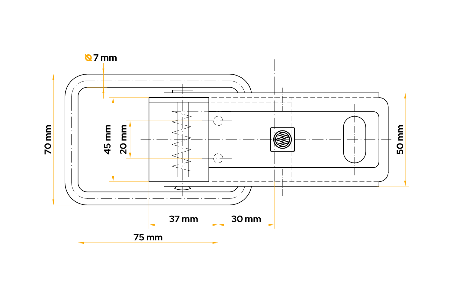 - A WINTERHOFF BV 70-1 oldalsó vonószerkezet egy rögzítőelem, amely pótkocsik, rakománydobozok vagy szállítójárművek oldalának biztonságos rögzítésére és stabilizálására szolgál. A vonószerkezet teherbírása 1000 kg.