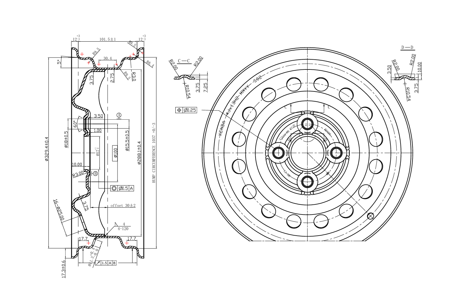 A felni keresztmetszeti profilja a felni belső részének alakjára utal, amely magában foglalja mind a peremet, mind azt a felületet, amelyen a gumiabroncs fekszik. Ez a profil kulcsfontosságú a gumiabroncs megfelelő illeszkedése, felszerelése és a jármű agyához való általános illeszkedése szempontjából. A H2 felni keresztmetszeti profilja egy dupla púpos felni. Ez a profil még nagyobb védelmet nyújt a gumiabroncs leválása ellen. Ez különösen fontos a sportos, terepjáró vagy nagyobb oldalirányú terhelésnek kitett járművek esetében.