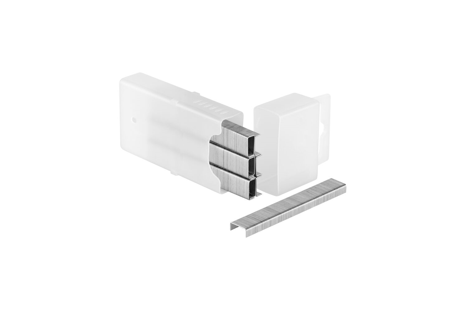 - A Stanley 1-TRA205T acélkapcsok (A típus, 3/53/530, 8 mm) tartós kiegészítők szövetek, fóliák és hálók rögzítéséhez. Horganyzott acélból készültek, így korrózióállóak. Ez az 1000 darabos készlet védőtokban érkezik, és kompatibilis az A típusú tűzőgépekkel