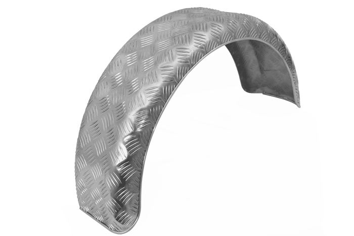 Egyetlen sárvédő A 14 és 15 hüvelyk átmérőjű kerekekhez tervezett D29122 DOMAR megbízható felszerelési elem többek között autó utánfutókhoz. Méretei: 770 mm hosszú, 200 mm széles és 385 mm magas . A robusztus alumínium kockás lemezes szerkezetnek köszönhetően a sárvédő könnyű, korrózióálló és kivételesen tartós, így intenzív használatra is alkalmas. További előnye a speciális ajak, amely növeli a szerkezeti merevséget és javítja a fröccsenő víz elleni védelmet. A sárvédőn nincsenek gyári rögzítőfuratok , így a felhasználó szabadon testreszabhatja a rögzítési pontokat az adott járműhöz.