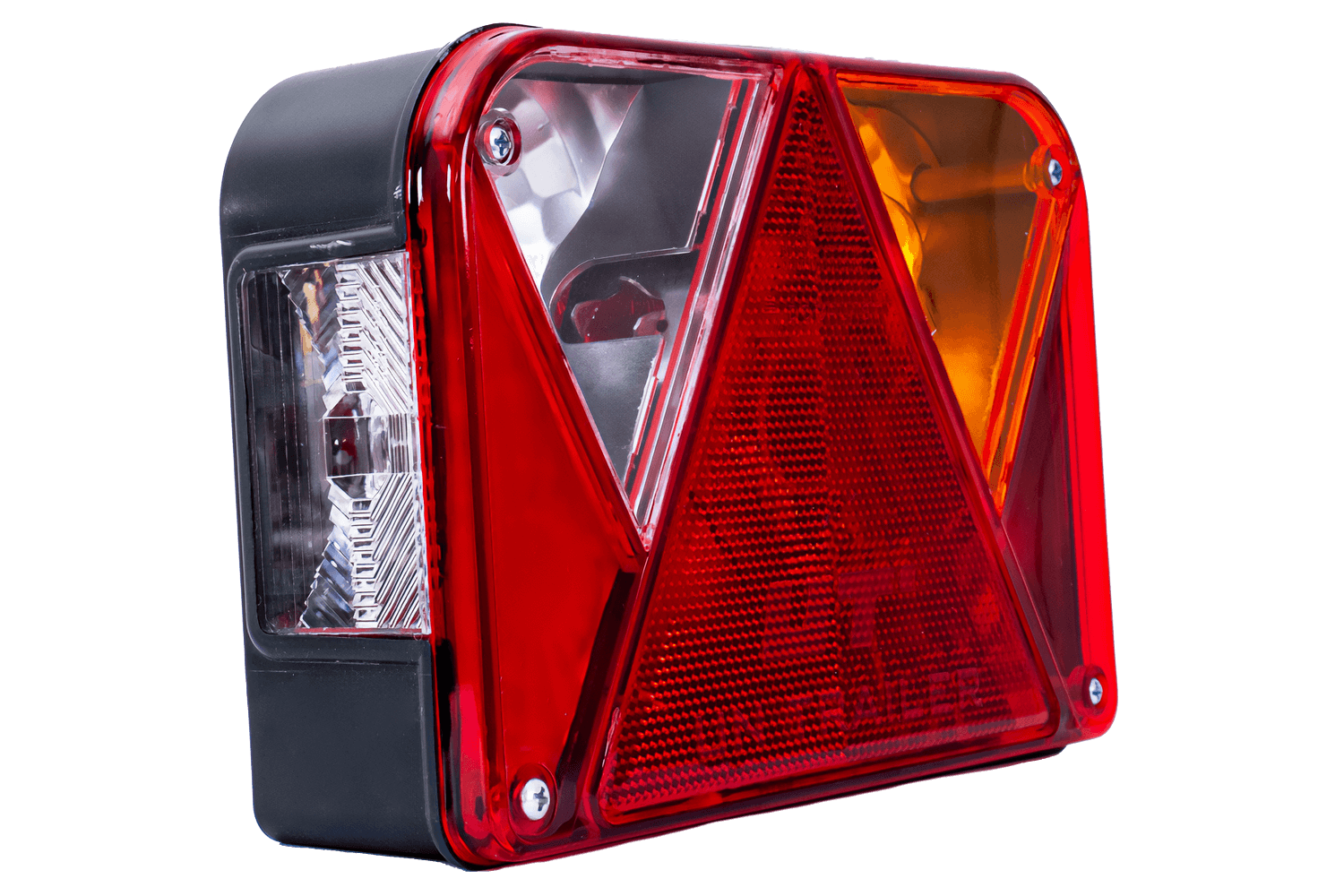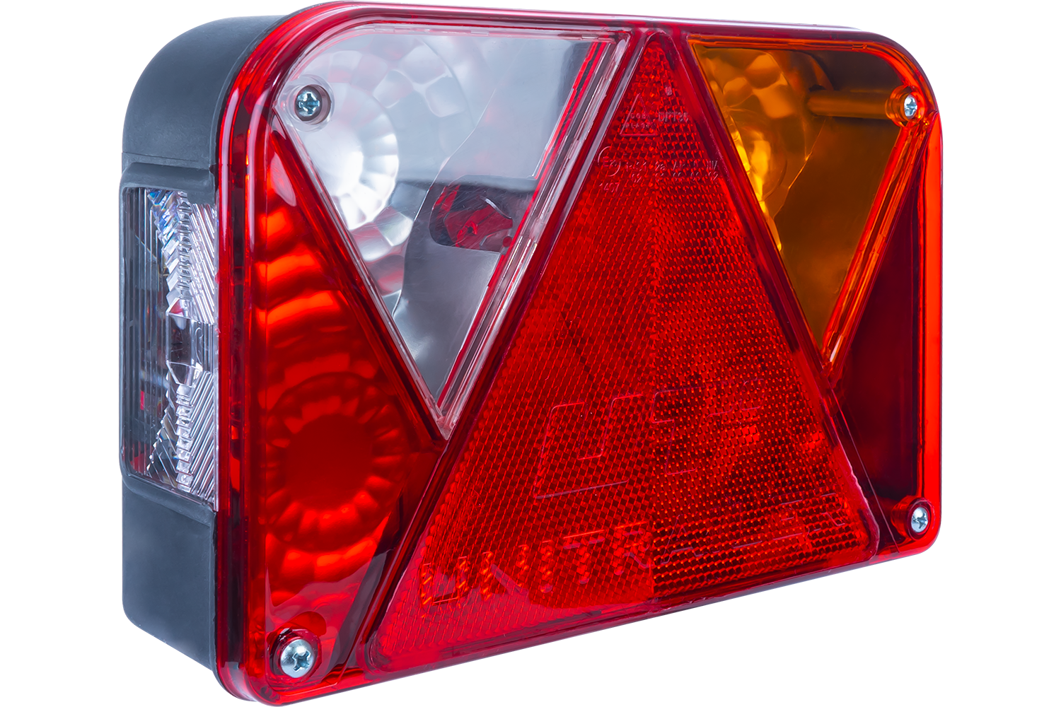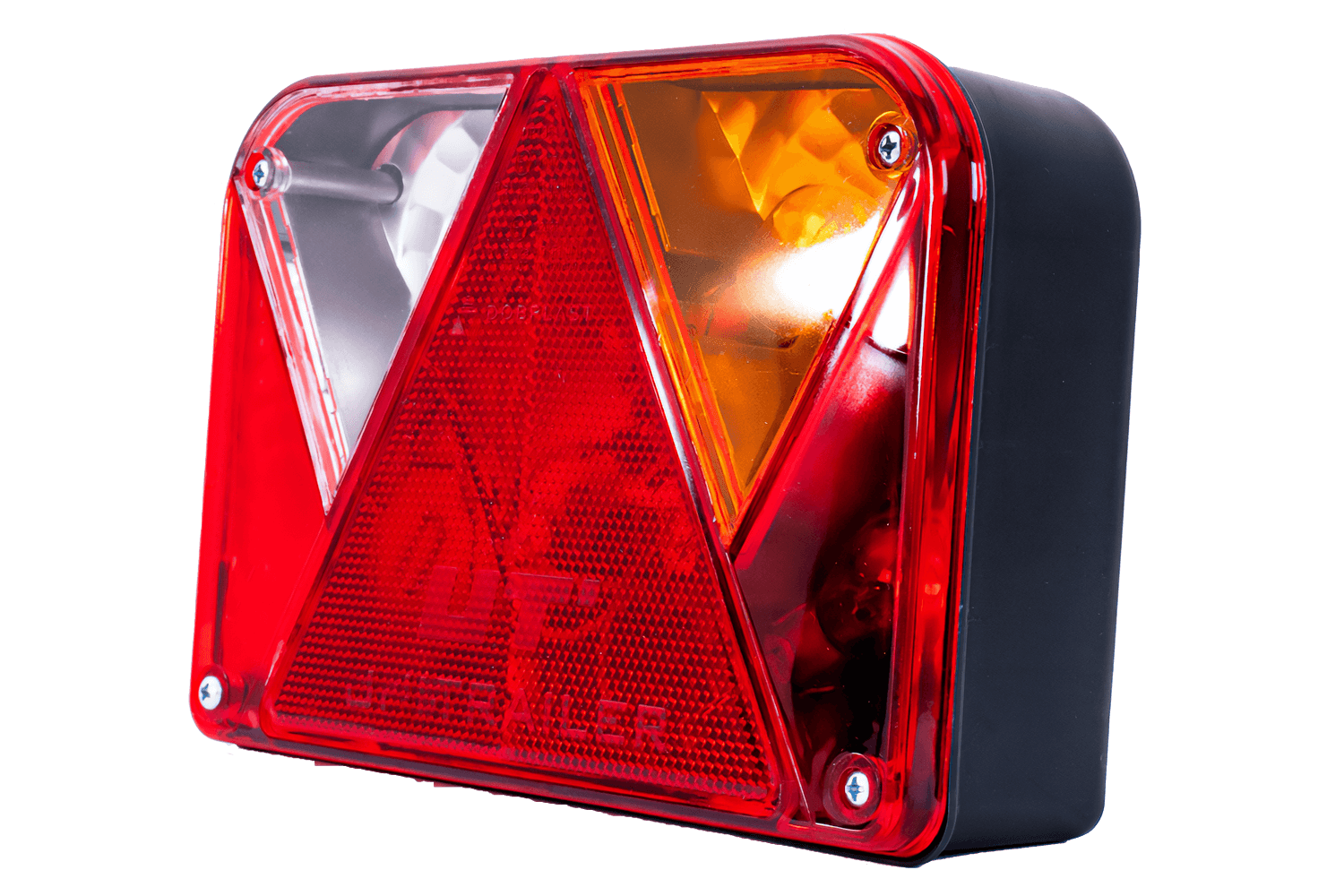 féklámpaA lámpának öt funkciója van: helyzetjelző lámpa , amely biztosítja a jármű láthatóságát éjszakai vezetés közben; irányjelző , amely lehetővé teszi a kanyarodási szándék jelzését ; egy féklámpa , amely a fékezést jelzi ; egy rendszámtábla-világítás , amely biztosítja a jármű rendszámának láthatóságát éjszaka ; és egy fényvisszaverő háromszög , amely növeli a jármű láthatóságát .
