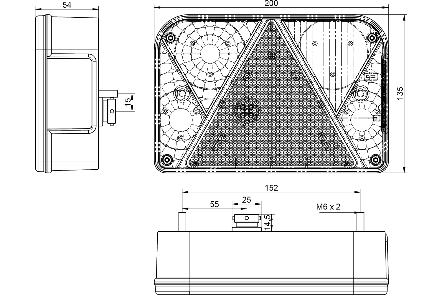 A DOBPLAST DPT35 hátsó lámpája a jármű jobb oldalára való felszerelésre készült. Méretei: szélesség 200 mm, magasság 135 mm, mélység 54 mm . Az 5 pólusú bajonettzárral felszerelve gyors és egyszerű telepítést tesz lehetővé. pótkocsikban, buszokban vagy pótkocsikban .