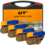 Négy darabos UNITRAILER 4m/25mm/0.68t szállítószalag-készlet feszítővel, bőröndben
